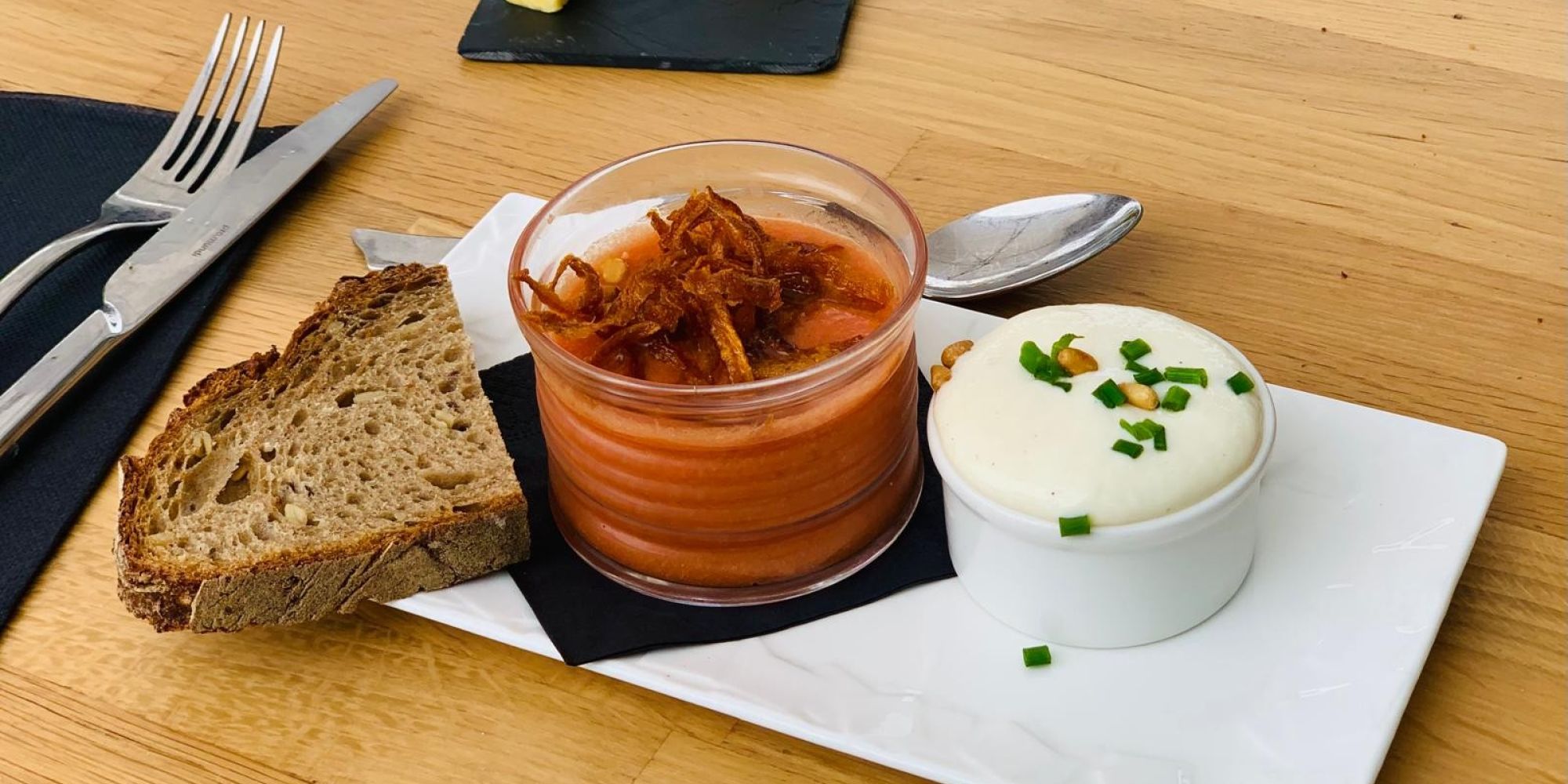 Installez-vous dans une salle baignée de lumière, où le bois et les matières brutes célèbrent notre terroir avec originalité. Ici, tout est pensé pour votre sérénité : une ambiance chaleureuse, un volume sonore apaisé et une décoration authentique. Le cadre idéal pour déconnecter et savourer l'instant, tout simplement.