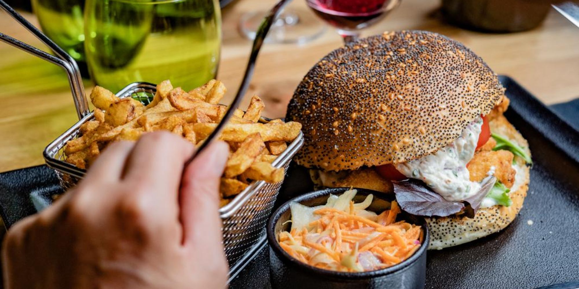Retrouvez toute la générosité de notre cuisine en vente à emporter : des plats frais, locaux et de saison, préparés avec soin et prêts à être dégustés. Commandez en quelques clics, retirez votre commande au restaurant et profitez d'un moment gourmand où que vous soyez.